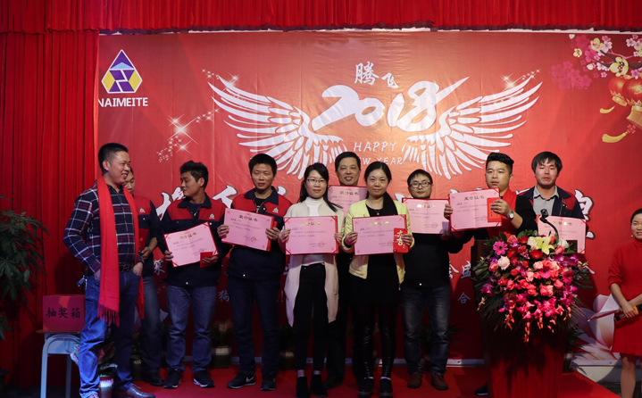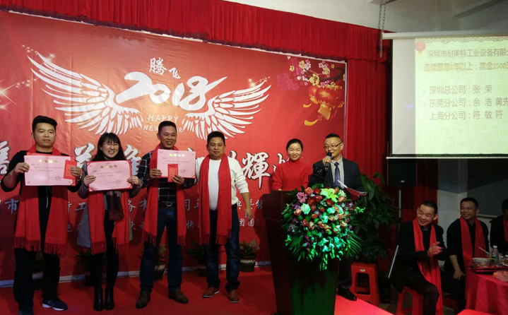 席間耐美特集團公司高層領導人為2017年度優(yōu)秀員工頒發(fā)了獎金及榮譽證書,以鼓勵大家在2018新的一年里再接再厲取得更好的業(yè)績。