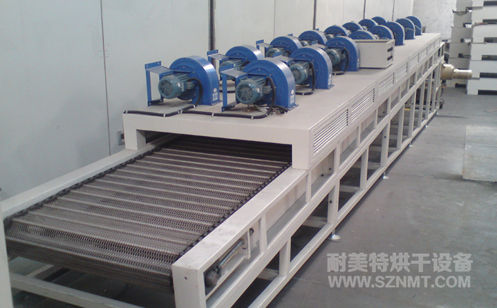 進(jìn)料部分長(zhǎng)1200mm,烘干部分長(zhǎng)16000mm;底部到網(wǎng)帶的高度為1100mm ;