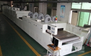 2、外形尺寸(約):總長24500mm*總高1740mm*總寬1890mm,地面到網(wǎng)帶的高度為950-1050mm,爐體內(nèi)進(jìn)料高度為150mm;烘干部分總長14000mm,分7段獨(dú)立控溫(每段4個(gè)測溫?zé)犭娕迹?,每?000mm。冷卻段長4000mm,UV區(qū)2000mm,前后緩沖區(qū)各長500mm,進(jìn)料部分長2000mm,出料部分長1500mm, 爐體前后大梁上方裝有急停開關(guān),共4個(gè)。